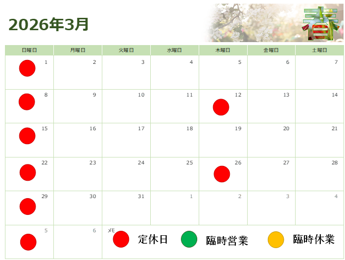 営業時間:9時~21時 定休日:日曜日 隔週木曜日